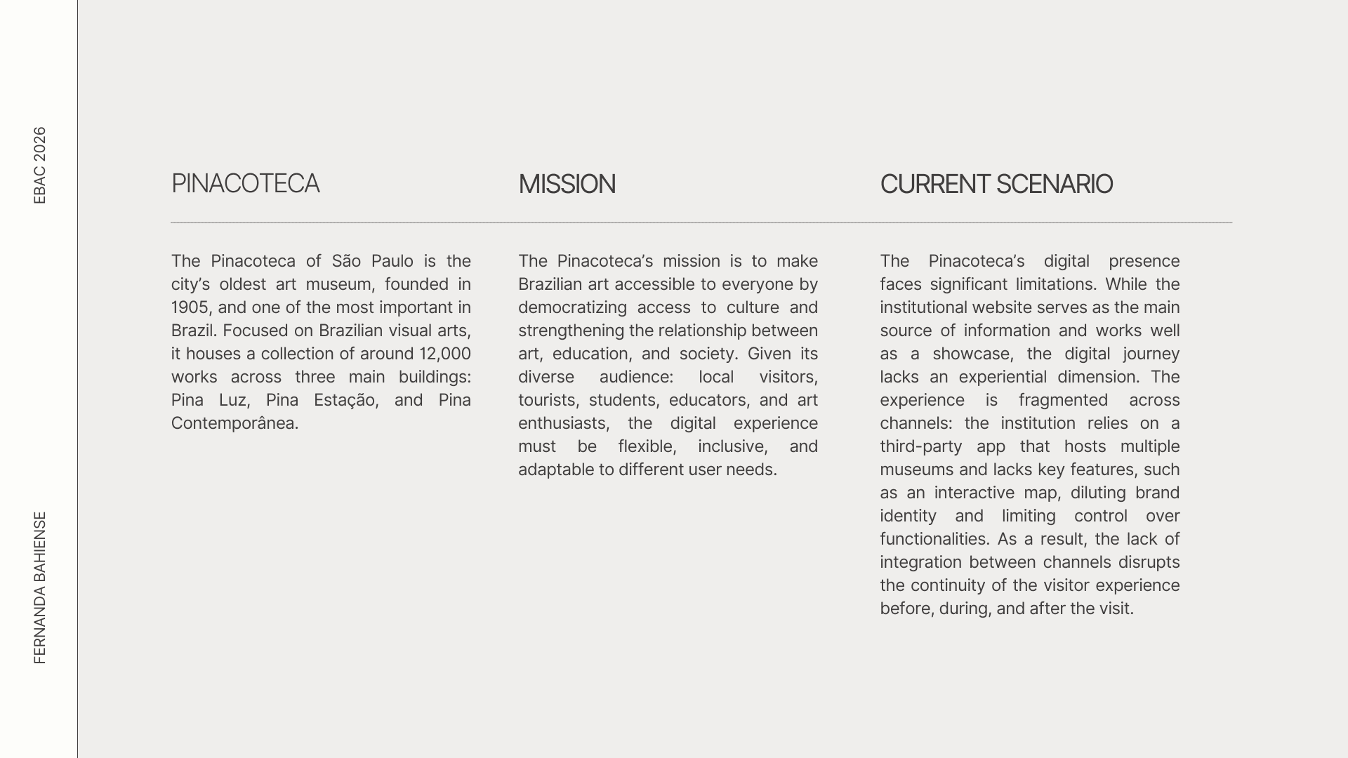 A UX/UI case study exploring the design and build of a native app that extends the museum experience beyond exhibition spaces. The project proposes an integrated digital solution connecting physical space, collection, and narrative through interactive maps, audio guides, and personalized curation, enhancing clarity, accessibility, and visitor autonomy.